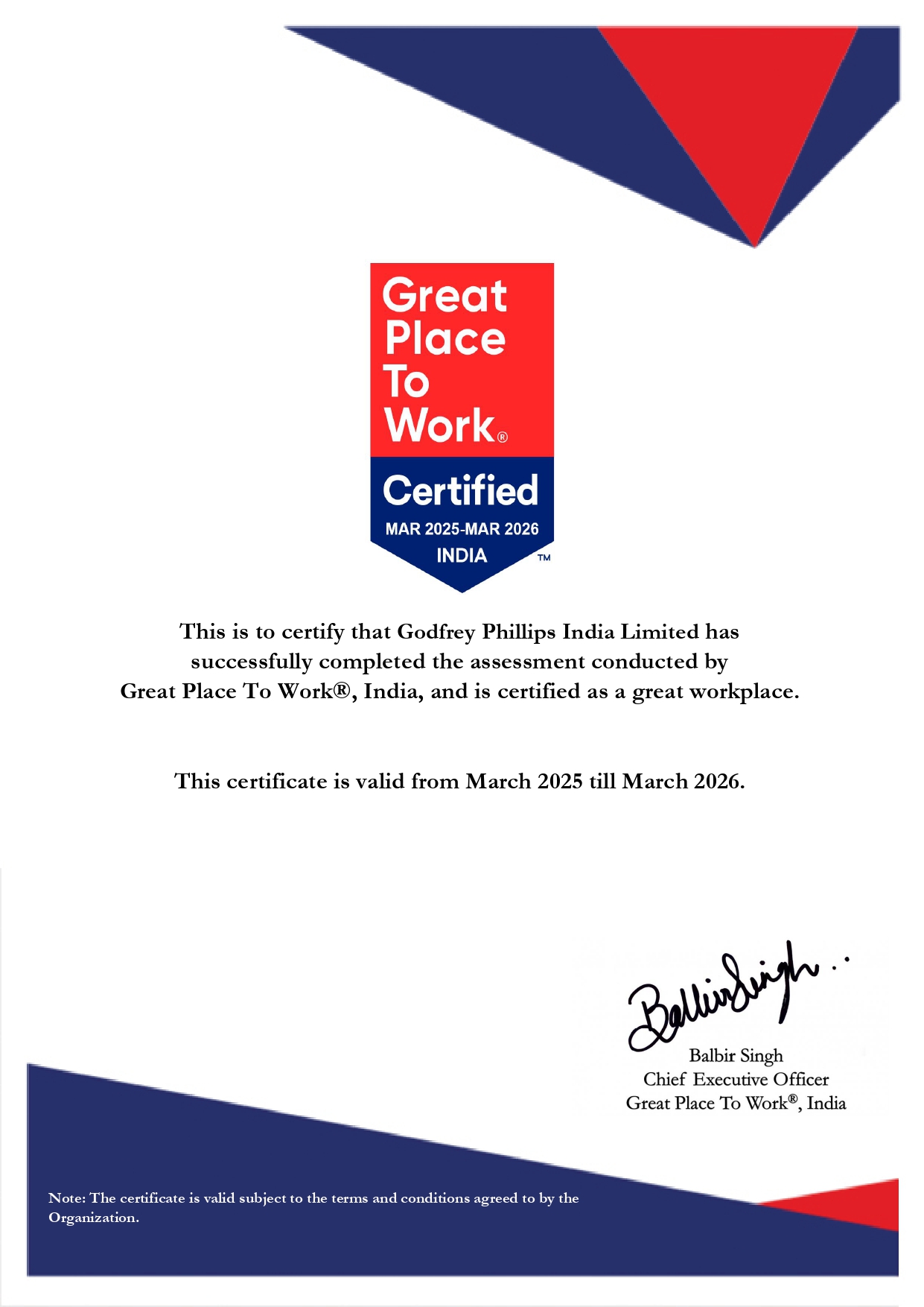 Godfrey Phillips India’s Rabale factory in Maharashtra has also been recognized for its remarkable environmental practices by the Greentech Foundation and by a cross section of reputed stakeholders, including the Vasundhara Awards by the Government of Maharashtra, INSSAN, IRIM for Manufacturing Competitiveness. Rabale unit has bagged the Greentech ‘Quality and Innovation’ Award for two successive years.